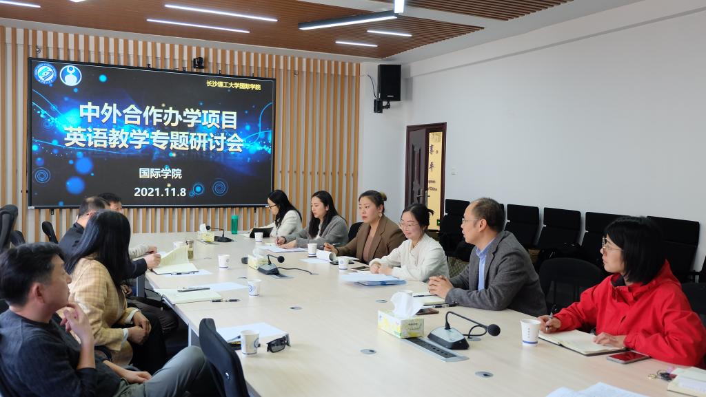 为了进一步提高中外合作办学项目英语课程教学质量,国际学院于11月8日在新能源大楼1栋416会议室组织召开了中外合作办学项目英语教学研讨会。外国语学院副院长黄坚,国际学院院长吴迪龙、副院长秦卫星、黄月华,承担项目英语教学的4位任课老师以及教务办相关人员参会。