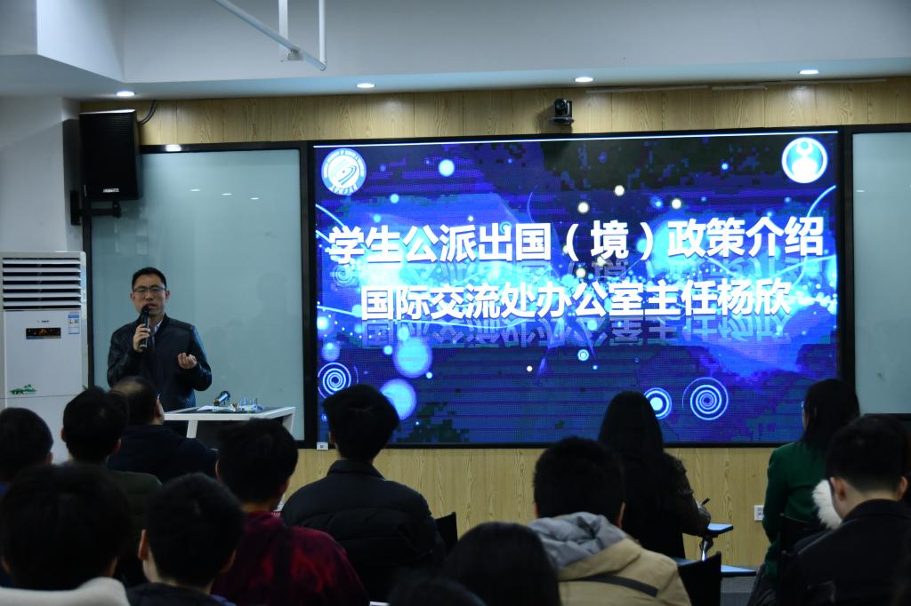 随后,杨欣从公派出国(境)的定义、类别、管理体制以及办理流程介绍学生公派出国(境)的政策。土木项目项目秘书李稀就申请条件、分流时间、预计开销以及最新申请流程进行详细讲解。同时,同学们在会议现场观看派出学生2016级罗嵩昊、2018级袁聿畅以及2019级喻天颖赴美后的学习、生活分享视频。三位同学分别从校园环境、配套设施、学习资源、教学安排等方面全面介绍赴美的学习生活情况,分享这段经历所带来的收获,鼓励学弟学妹们要进一步明确学习目标和努力方向,勇于尝试和改变,不断提升国际竞争力。