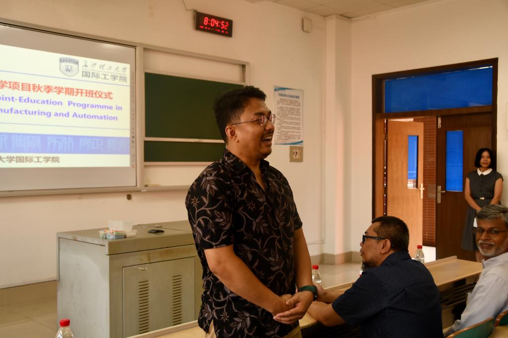 9月11日上午,2023-2024秋季学期中外合作办学项目(机械制造专业)三门引进课程在云塘综合教学楼正式开课,这是云顶国际vip8866与马来亚大学合作三年来,首次实现外方线下授课。国际工学院副院长黄月华出席开课仪式并致辞,马方外教、中方助教、机械项目秘书,以及2020届本专业全体学生在云综教B307教室参加了开课仪式。开课仪式由教务办主任余志主持。