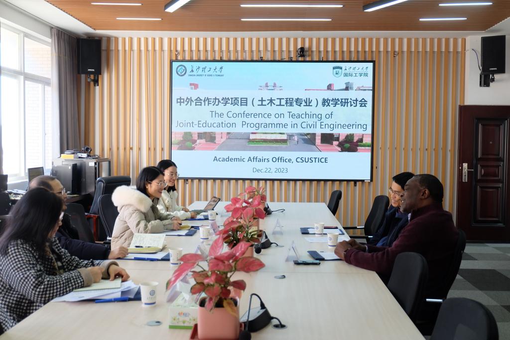 12月22日下午,国际工学院在新能源1栋416会议室组织召开中外合作办学项目(土木工程专业)引进课程教学研讨会。美国田纳西大学查塔努加分校土木及化学工程系主任Owino Joseph教授、Weidong Wu副教授,国际工学院院长吴迪龙及教务办相关老师参加会议。会议由李稀主持。