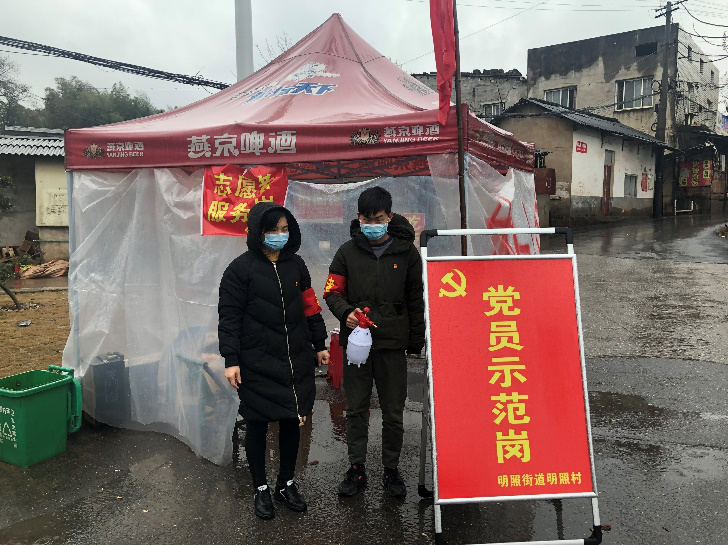 来自1604班的优秀学生党员贺静南于疫情期间在湖南省株洲市明照街道明照村的党员示范岗参与了值班和查岗。他说:“因为疫情形势严峻,我们当地很早就启动了24小时设卡,三班倒制,因为人手不够,我平时的工作就是对来往车辆进行登记以及对来往人员消毒以及帮助制作一些宣传资料。”