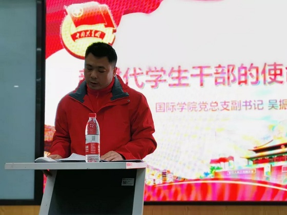 本次大会,由各个部门的部长发言介绍了自己部门的职责以及成员。学生会大会之后,青马班第一次课程正式开班,首先由团委书记马玉文主讲了开班仪式。国际学院党总支副书记吴振华作为青马班的第一次课程的主讲人,围绕“新时代学生干部的使命与担当”给大家上了精彩的一课。