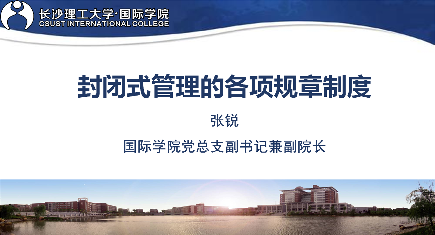 为做好毕业生返校后封闭式管理工作与心理健康知识的普及, 5月22日晚,国际学院召开2020届毕业生开学返校心理防控第一课。会议邀请了学校心理健康教育中心主任龚勋和院党总支副书记兼副院长张锐作为主讲人。2020届毕业年级辅导员唐宏敏、心理辅导员唐山以及全体2020届毕业生参加了本次会议。
