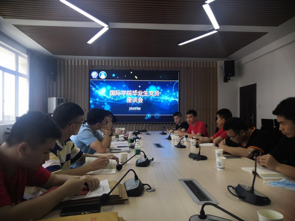6月15日,国际学院组织召开了毕业生党员座谈会,会议特邀关工委王乃厚主任出席并做毕业生教育辅导报告,国际学院党总支副书记兼副院长张锐,学生党支部书记、辅导员易芙蓉以及全体毕业生党员共同参加了本次会议。会议由张锐副书记主持。