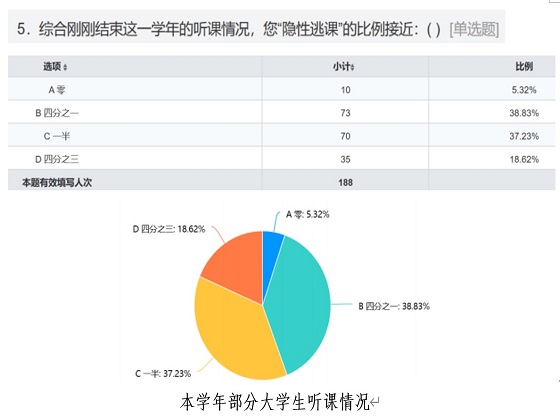 二是关于疫情期间大学生居家的相关情况的调研。土木1902班的谢愉杰带领组员对疫情期间大学生的学习情况进行了调查,他们认为疫情期间绝大多数大学生仍保持认真学习的态度,但学习意识缺乏科学性;电气1902班的赵博雅组开展了大学生“挂”网课的调查,他们发现大学生挂着网课干其他事情的现象非常普遍,并认为该现象的主要原因是学习动力的不足,学生应及时改正调整;土木教改1901班的张家明组结合网络调查问卷及线上交流的方式进行了关于疫情对大学生运动影响调查,得出疫情期间大学生运动锻炼次数较多,但线上体育课效果欠佳的结论,他们认为学校应提升同学们对线上体育课教学的积极性。
