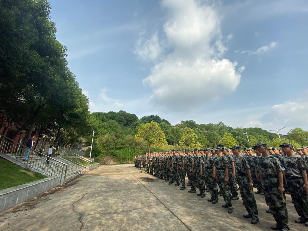 军训场地上,参训新生口号响亮、斗志昂扬。院领导一行观摩了学生训练,向带训辅导员详细了解了军训工作开展情况,并与带训教官和参训新生亲切交流。