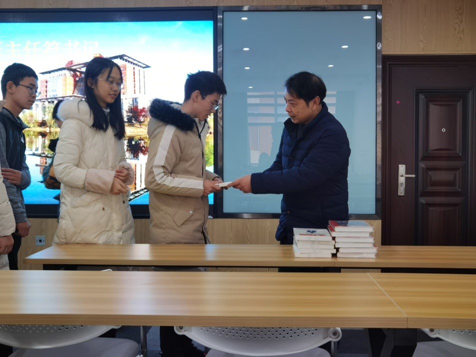 随后,班主任为每位学生赠书,《王阳明——神奇的心学》与《公正》寄托了班主任符慧林对学生们的美好期许,更有勉励进取之意。符慧林表达了对同学们日常生活的关心与对学业上的要求,希望学生们能有所作为,有所担当,成为长理栋梁之才,更是祖国的栋梁之才。