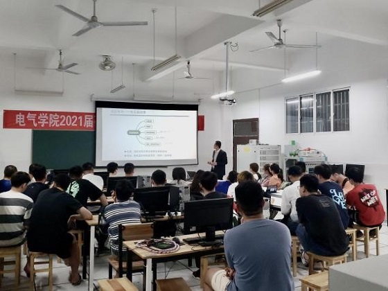 为进一步加强专业认知,做好大三学业规划,5月30日晚,电气学院副院长王文教授、岳雨霏老师为电气(国际)1904班作专业指导。班主任黄文卫老师主持本次班会。