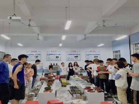 王文围绕课程体系、学习建议、学科竞赛、学业规划四个方面系统地进行讲解。他深入浅出的概述了专业核心课程,针对中外合作办学背景下的专业学习给出了宝贵的学习建议,全面地介绍了电气学院专业老师的科学研究和学科竞赛团队情况,并结合最新形势介绍了就业前景。他鼓励大家深度参与科研和竞赛,并考取研究生。在摆放着许多电机设备的实验室里,岳雨霏老师详细地介绍了各个元件的特性与作用,传授了电机学四步走的学习方法,即“等效电路、平衡方程、向量图、特性”,耐心地解答同学们提出的问题。