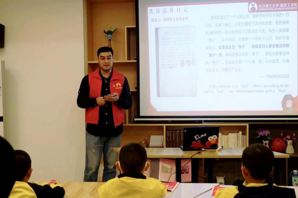 宣讲会现场,萨利用英文朗读了雷锋日记中的“雷锋七问”。谈及阅读体会,他说,“我是外国人,但不是外人。我要以雷锋为榜样,今后参与更多的志愿服务,守护好我的第二故乡长沙。”