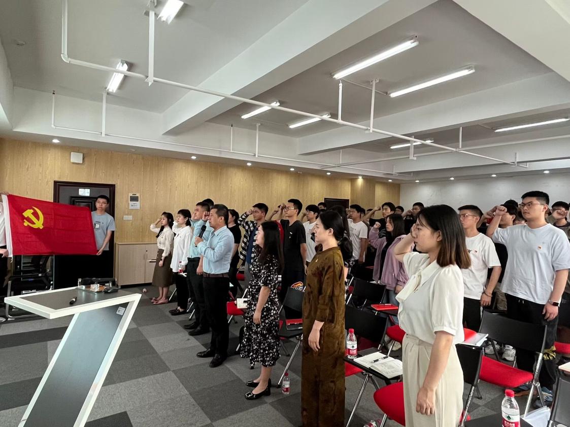 随后,学院特邀党建组织员李争流带领全体党员,重温入党誓词。作为前辈老党员,他对新一代学生党员寄予厚望,教导同学们应不忘初心使命,永葆党员本色,充分发挥党员的先锋模范作用。