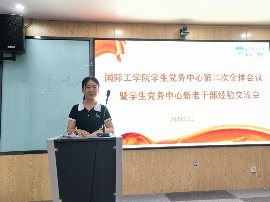 9月11日晚,国际工学院学生党务中心在新能源大楼1栋402报告厅召开了第二次全体会议暨学生党务工作新老干部经验交流会,学工办辅导员代表及学生党务中心全体成员参会。