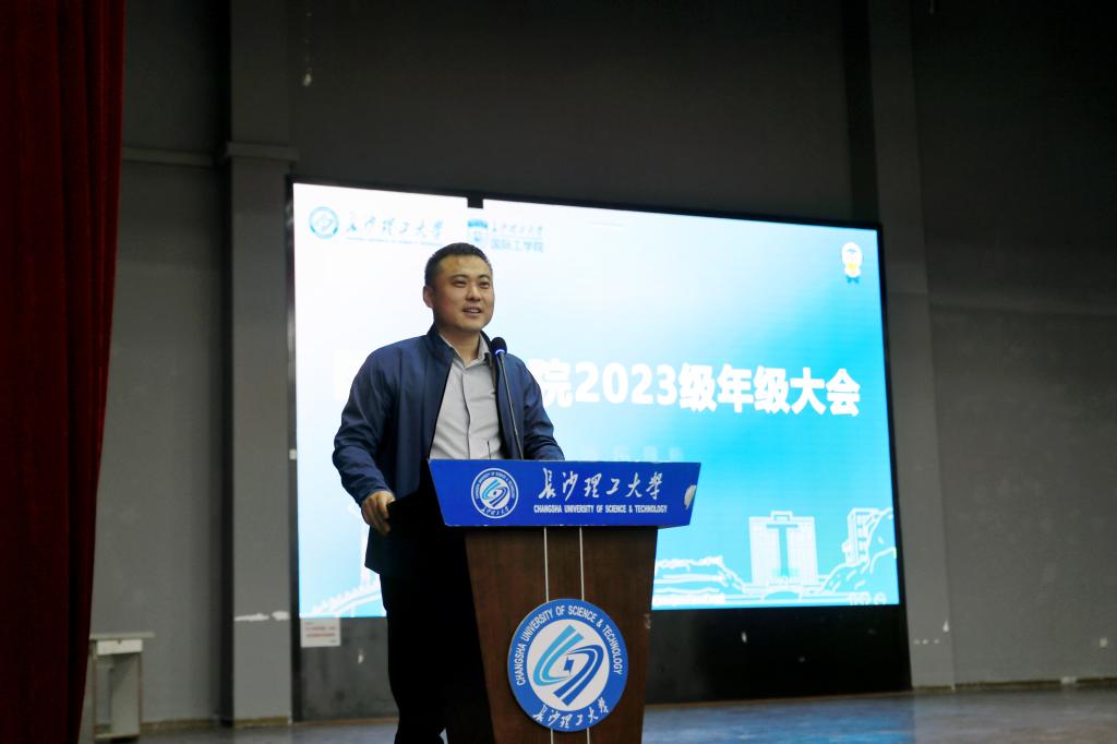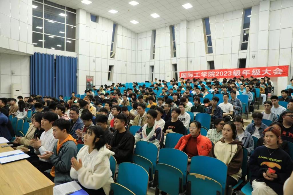 4月11日晚,国际工学院于学生活动中心科技报告厅召开2023级年级大会,学院党委副书记兼副院长乔法光、年级辅导员吴紫怡、高年级优秀学生代表及2023级全体学生参会,会议由土木2302班舒豪主持。