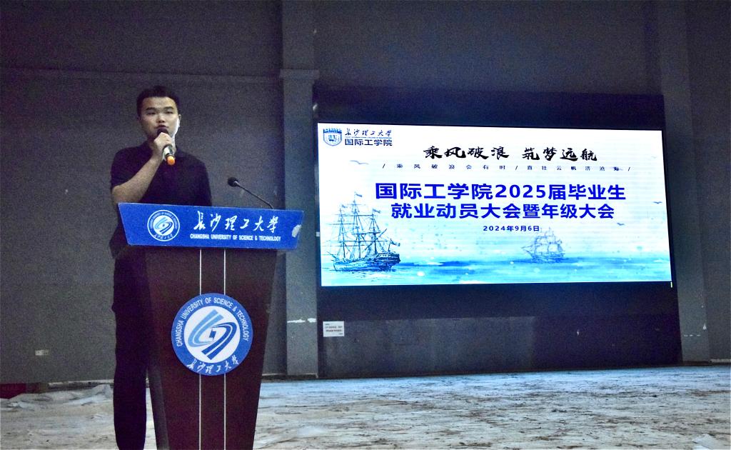 9月6日晚,国际工学院于学生活动中心科技报告厅召开2025届毕业生就业动员大会暨年级大会,学院党委副书记兼副院长乔法光、年级辅导员魏涛及2025届全体毕业生参会,会议由学生就业助理陈乐平主持。