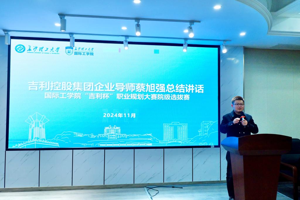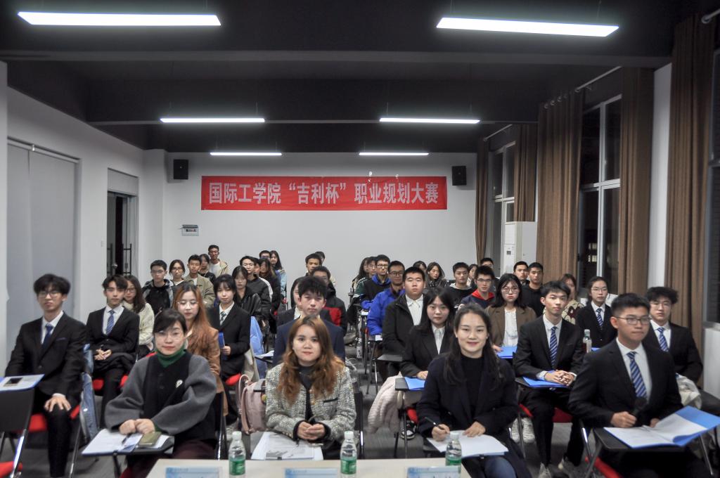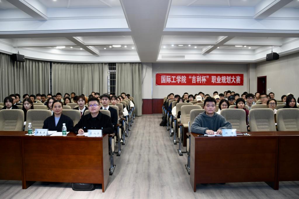 11月22日晚,国际工学院“吉利杯”职业规划大赛于文科楼D207和D505报告厅举行,24名优秀选手同台竞技,一展风采。本次大赛由吉利控股集团校园与雇主品牌平台华中大区经理蔡旭强、吉利控股集团极氪用户端中南战区HRBP负责人陈小双、学院党委副书记兼副院长乔法光、党委委员、学习与发展中心主任黄文卫、教务办主任余志及学工办辅导员老师担任评委,逾120名学生代表观摩比赛。