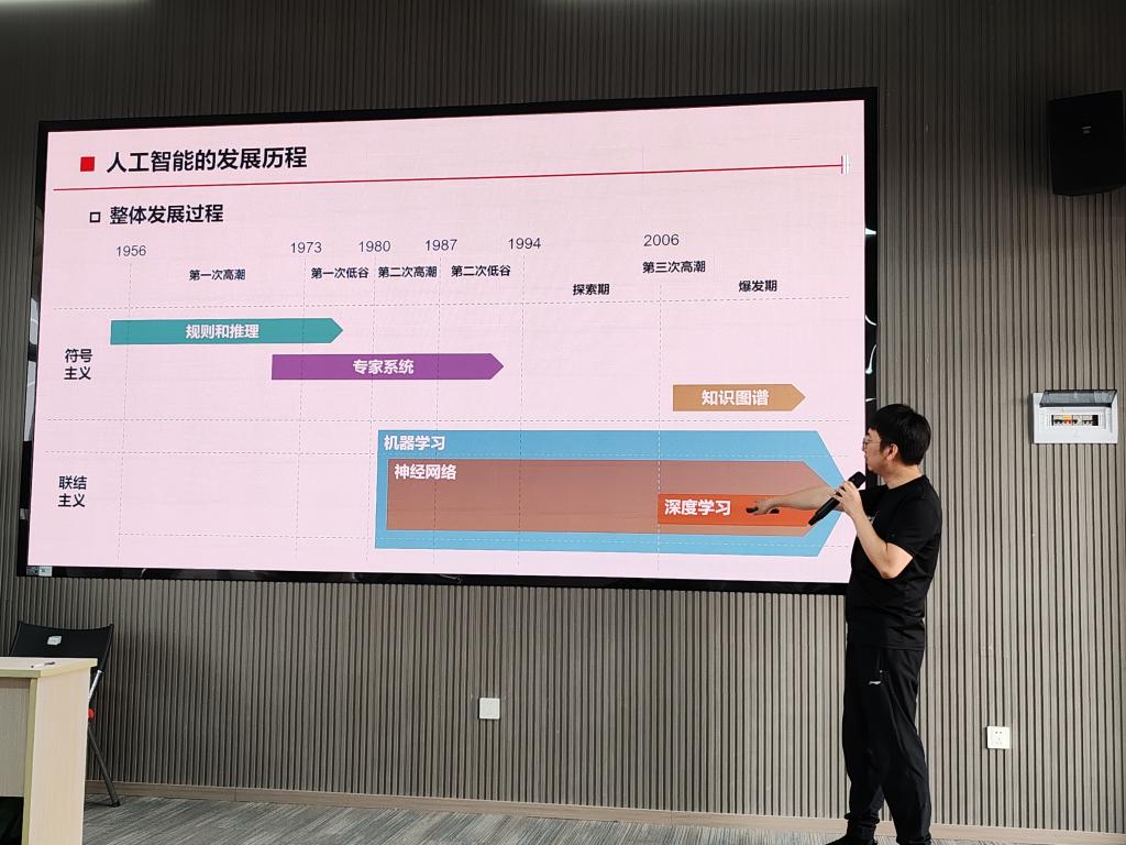 讲座伊始,张老师从人工智能的起源讲起,深入浅出地揭示了它如何模拟人类智能,通过先进的算法实现感知、推理和决策功能,一步步融入并改变我们的生活。