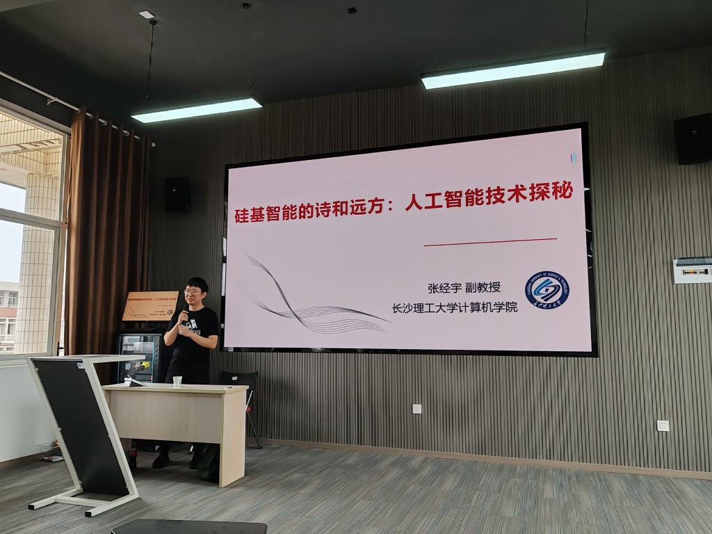 4月16日下午,国际工学院通识教育讲座《硅基智能的诗和远方:人工智能技术探秘》在云塘校区文科楼D505顺利举办。本次讲座由云顶国际vip8866计算机学院计算机科学与技术系主任、湖南省普通高校青年骨干教师、云顶国际vip8866“湖湘学者”特聘副教授张经宇老师主讲。本次讲座旨在加深同学们对人工智能的理解,并结合实际生活中的案例帮助同学们进一步提升对人工智能的认识。