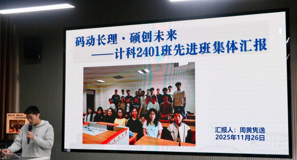 11月25日下午,国际工学院于文科楼D505报告厅举行2025年“先进班集体”答辩暨风采展示活动。本次活动由学院特邀党建组织员李争流、学工办辅导员老师担任评委,16个先进班集体候选班级、各班级班委代表共60余人参与。