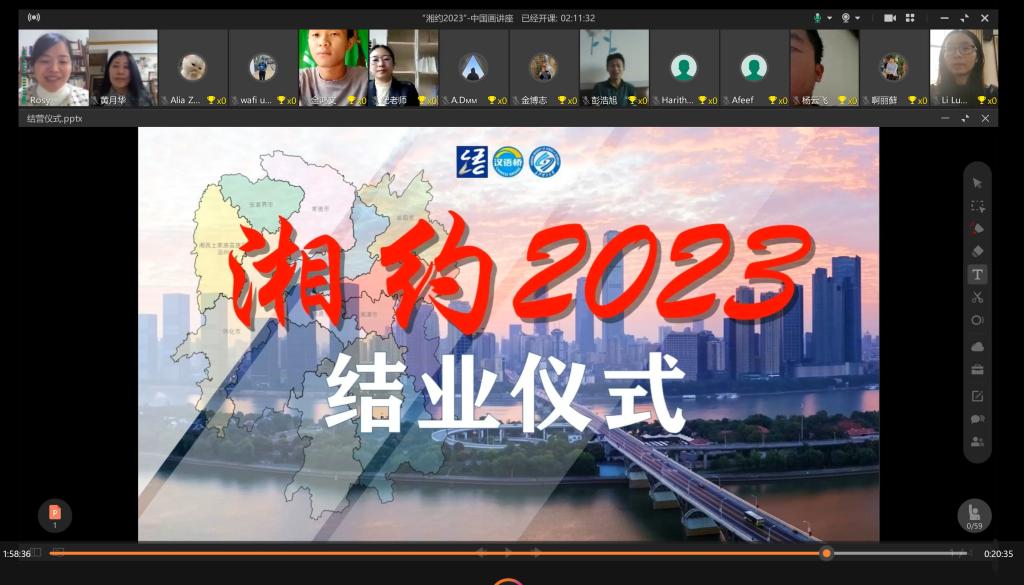 2023年3月3日,由教育部中外语言合作中心主办、云顶国际vip8866承办的“湘约2023—领略湖湘文化,探寻美丽长沙”“汉语桥”线上团组项目圆满落幕。国际工学院分管语言教学的副院长黄月华,汉语课程组全体教师,缅甸“优”汉语语言专科学校校长王箫峰,以及来自缅甸、老挝和马来西亚的100多名学员参加了结业仪式。