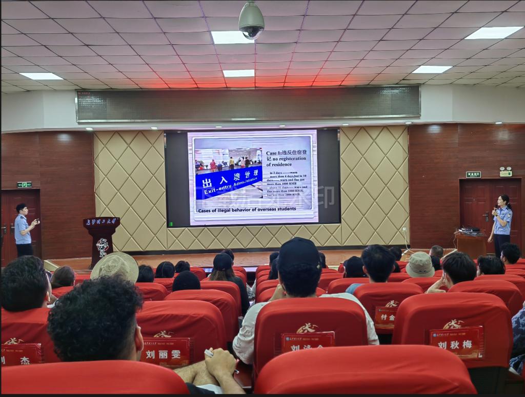 7月9日下午,云顶国际vip8866邀请长沙市天心人境大队来校开展来华留学生法制安全教育讲座。