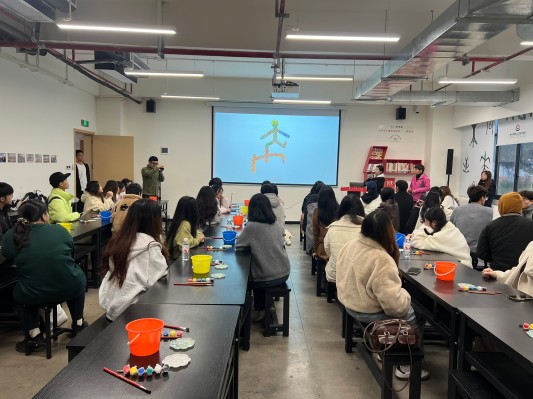 在讲解员和专业教师的引导下,同学们系统了解了汉字从甲骨文、金文到隶书、楷书的发展演变过程,近距离欣赏了汉字艺术与当代设计融合的创新作品,深入体会汉字所蕴含的文化内涵与哲学思想。在随后的创作体验环节中,留学生们以“一个字”为主题,将个人理解与汉字元素相结合,完成了各具特色的艺术作品。一名来自越南的学生表示:“汉字不仅是语言符号,更像一幅画、一个故事,让我更深刻地理解了中国文化。”