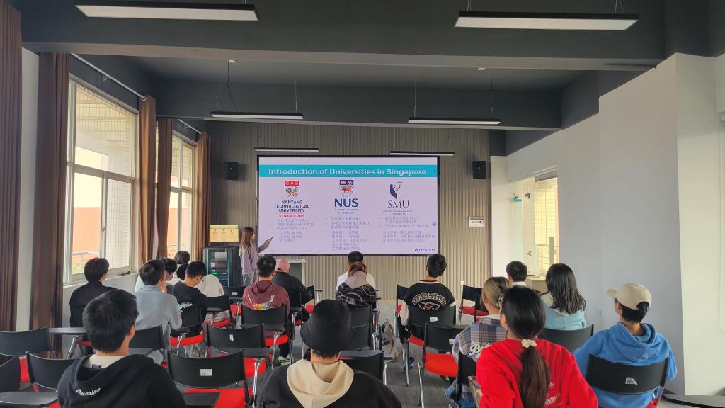 会上,陈诗莹老师对新加坡国立大学、南洋理工大学、新加坡管理大学等几所著名高校的特色专业、入学要求、申请流程等作出详细介绍。在谈到拓宽国际化视野时,她建议学生在本科阶段可通过短期国际交流项目,如国际学生志愿者项目、高校夏令营、冬令营等,丰富自身经历,为未来升学和发展积蓄力量。