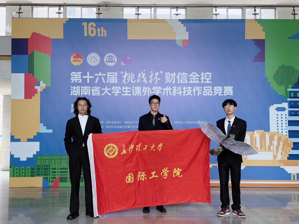 6月11日,第十六届“挑战杯”财信金控湖南省大学生课外学术科技作品竞赛终审决赛在邵阳学院火热开赛。在此项被誉为青年学生逐梦创新的“奥林匹克”的“挑战杯”盛赛中,由国际工学院土木2202班吴睿恩同学担任负责人、机械2303班陶鑫旺同学为队员的《云鹰智巡——新时代中国智能仿生扑翼鸟探索开拓者》项目斩获湖南省特等奖。