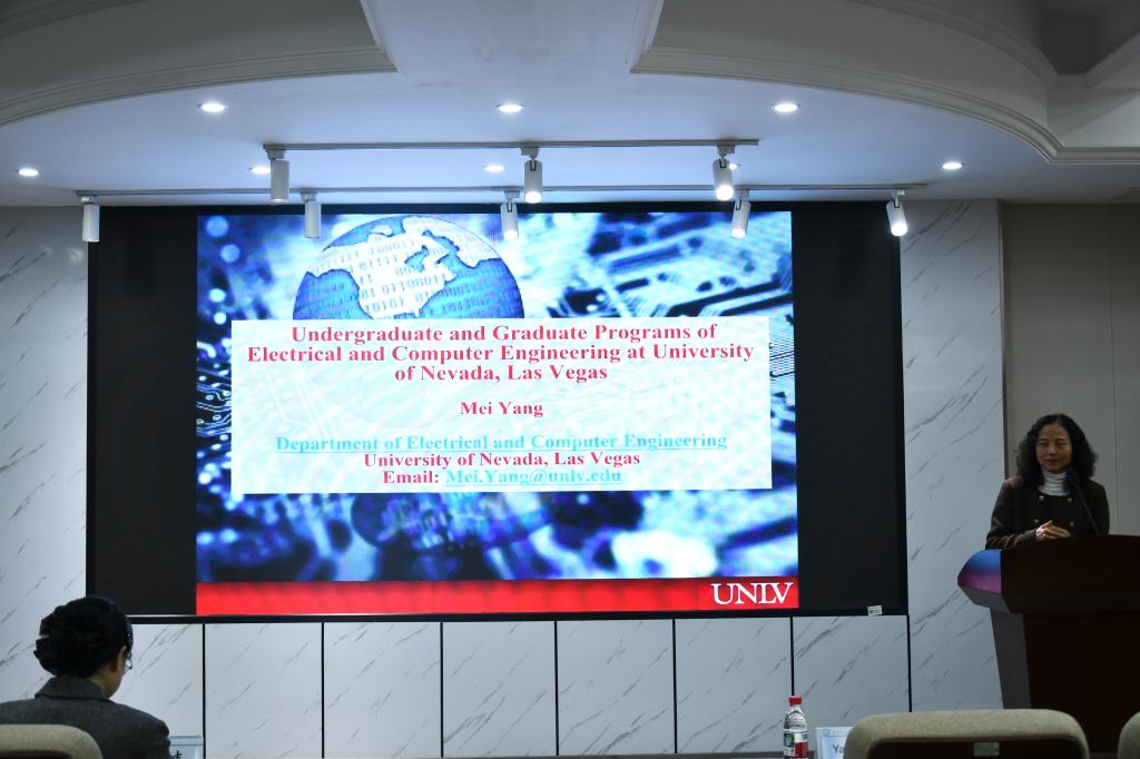 12月30日下午,美国内华达大学拉斯维加斯分校(UNLV)电气工程专业宣介会在云塘校区文科楼D区207报告厅举行。本次宣介会特邀UNLV工程学院电气工程系主任 Mei Yang教授主讲,教务办主任余志老师以及云顶国际vip8866中外合作办学项目电气专业50余名学生参加。