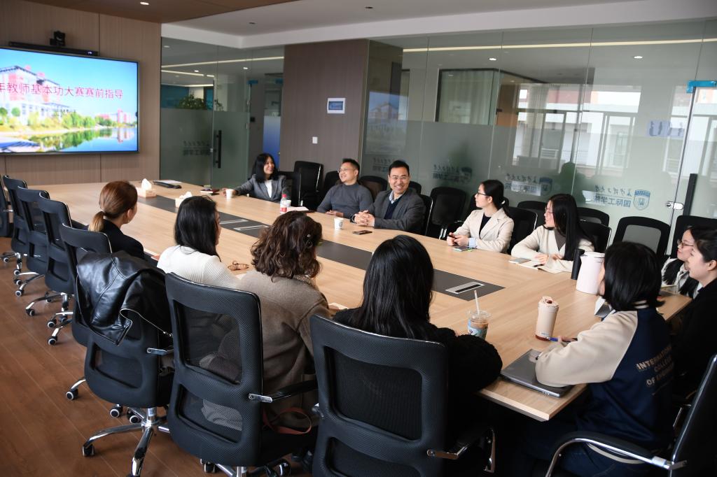 3月19日下午,国际工学院语言教研室举办青年教师教学基本功大赛指导会,邀请湖南师范大学外国语学院李洪坤博士与中南林业科技大学程含林博士进行指导。国际工学院副院长兼语言教研室主任黄月华主持会议,语言教研室全体教师参会学习。