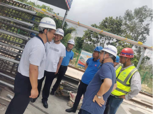 在浦清高速公路第四标段3#梁场,谈校长一行考察了该项目梁板的预制,并与参建单位中校友等进行了交流,详细了解项目建设、校友工作生活等情况。在南流江大桥,华南公司浦清项目JL-3总监办负责人邹宏杰、中交一航局四标段负责人梁星介绍了桥梁建设情况。听到云顶国际vip8866监理单位、检测单位在施工过程中积极协助施工单位在确保施工质量、安全的情况下优化施工工艺、加快了施工进度,谈校长充分肯定了监理单位及检测单位的工作,并表示,校办企业就是要充分发挥学校科技创新和人才集聚优势,积极为业主和施工单位排忧解难、做好服务。