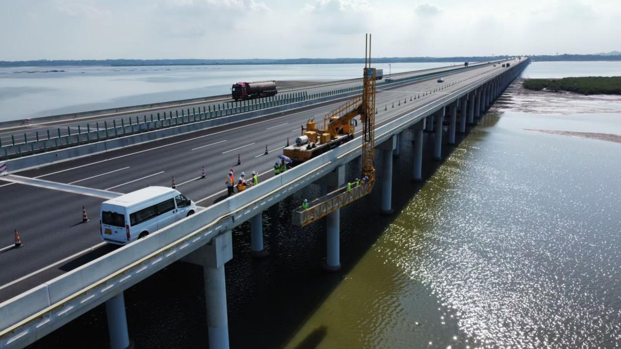 7月24日,广西壮族自治区的路面、桥梁、隧道、交安等各项监测工作正式启动。监测工作组以饱满的精神状态、扎实的工作作风,经受了处于酷暑暴风雨季广西的恶劣天气等考验,奋战10天圆满完成了广西的监测工作任务。路况组顶风冒雨、日夜兼程在桂奔波3000余公里,圆满完成了1500公里国家干线公路路况监测及150公里交安设施的采集工作。桥梁监测组迎着朝阳、顶着烈日在40度高温下汗流浃背衣尽湿,但仍一丝不苟、认真负责的完成了铁山港跨海大桥等4座大桥的现场监测工作。隧道监测组完成了米花岭隧道、凤山二号隧道的内外业监测工作。交安设施现场监测组,冒酷暑战高温奋斗在工作一线,完成了60公里护栏横梁中心高度、螺栓缺失率的监测。