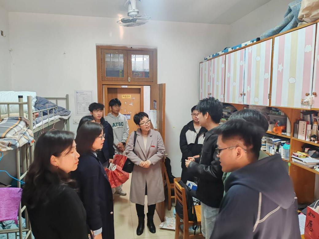为切实关怀考研学子的备考生活,12月9日上午,学院党委书记文丽丽、副院长张云菲、副院长邢学敏、教育教学办李娟老师、辅导员肖敏强带着精心准备的考研暖心礼包走进学生宿舍,为备考学子加油鼓劲。