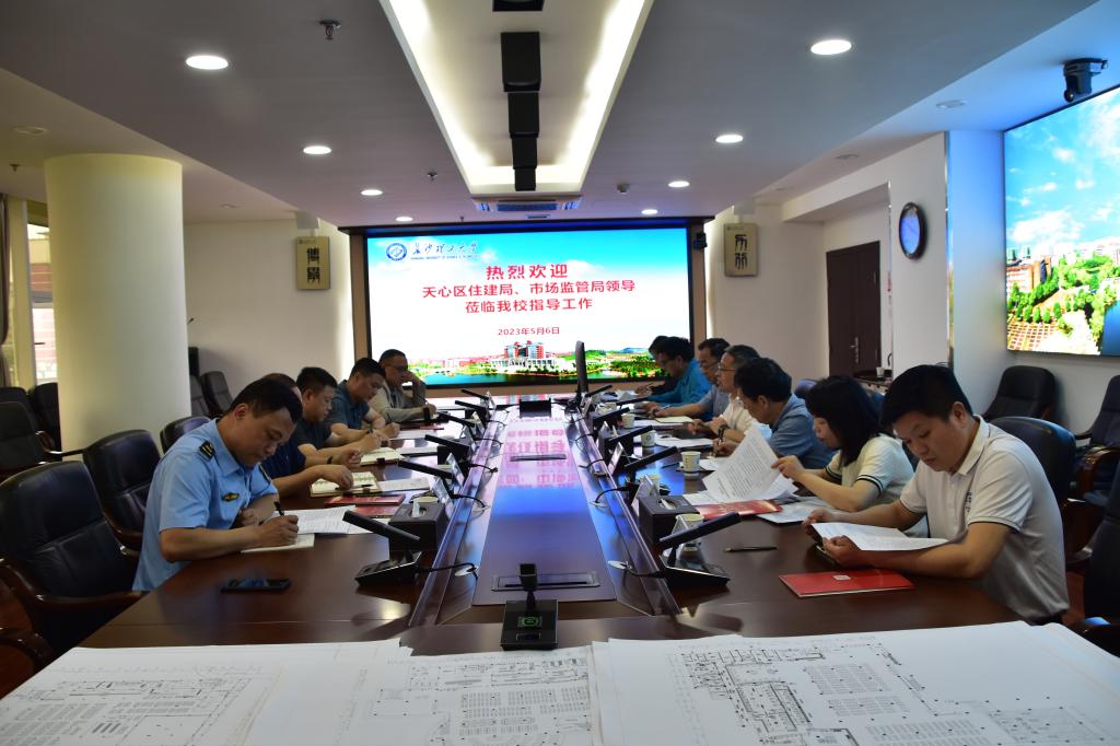 5月6日上午,天心区住建局党组书记周雄、市场监管局局长何东等一行6人来云顶国际vip8866调研指导食堂消防安全和食品安全工作。副校长胡永乐出席座谈会,后勤中心相关负责人参加座谈。座谈会由后勤中心党委书记王明彦主持。