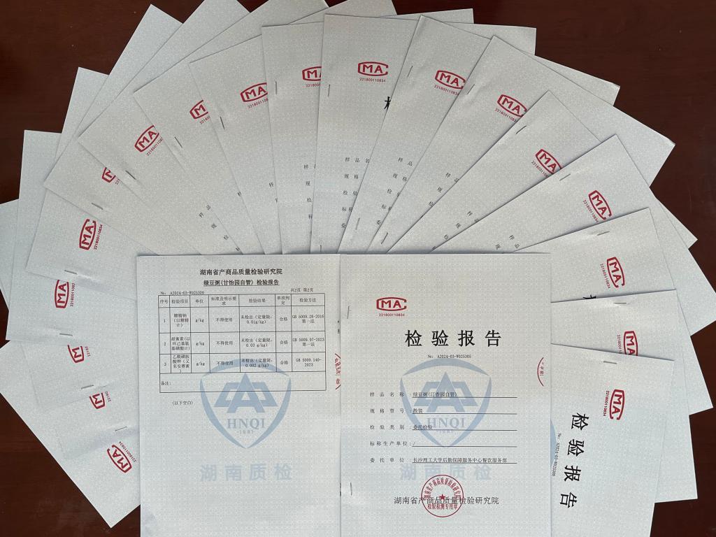 本次抽检,委托湖南省产商品质量检验研究院重点检测了全校6个食堂食品添加剂的规范使用情况。抽检内容涵盖自制饮品、粥类及包点3大品类,共计20个样,采取GB 5009.97-2023第一法、GB 5009.28-2016第一法及GB 5009.140-2023的检验方法标准。