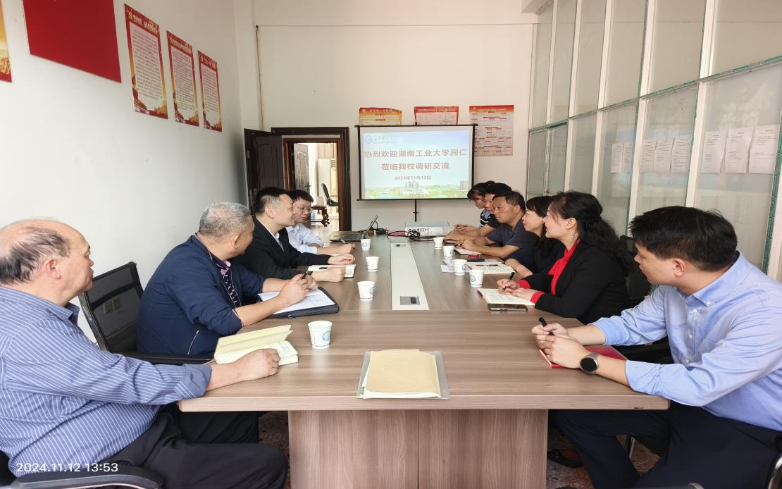 11月12日下午,湖南工业大学后勤管理处副处长张锋一行4人来校调研餐饮工作,后勤中心副主任邓应军及餐饮部相关负责人参加调研。