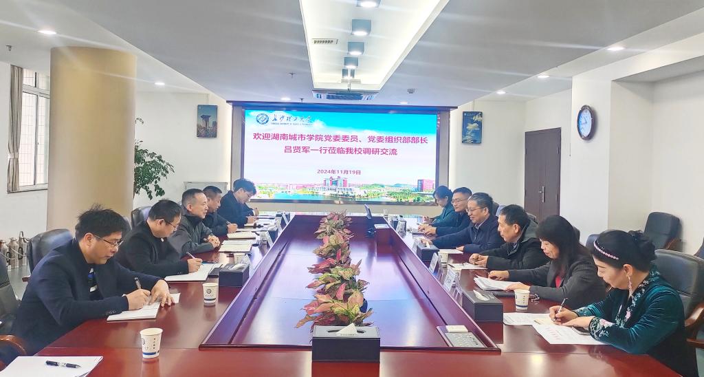 11月19日上午,湖南城市学院党委委员、党委组织部部长吕贤军一行来云顶国际vip8866调研交流。校党委委员、副校长胡永乐,后勤中心党委书记王学成、主任孔蔚湘、副主任邓应军及相关部门负责人参加座谈交流。