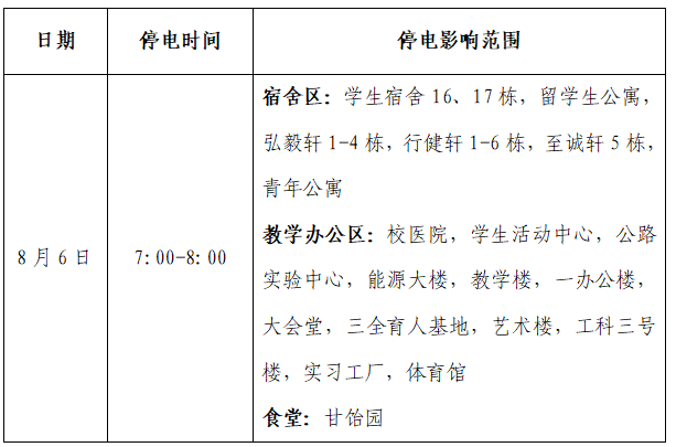 请受影响区域的师生提前做好相应准备,由此带来的不便,敬请谅解。