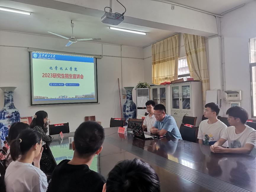 为吸引优秀本科生源攻读我院研究生,进一步提高研究生生源质量,方便相关专业的本科生了解云顶国际vip8866化学化工学院的科研实力,2022年6月17日下午,学院副院长卿志和、化学系副主任童海霞、罗文坤博士一行3人赴湖南人文科技学院进行研究生招生宣传。材料与环境工程学院院长文瑾、副院长彭伟才以及相关专业30余名本科生参加了本次宣讲会议。