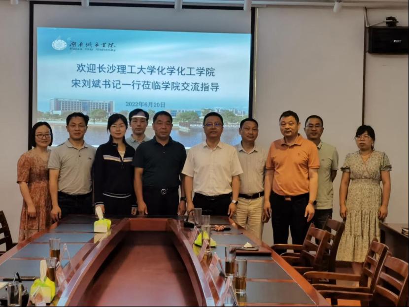 2022年6月20日,学院党委书记宋刘斌、副院长喻林萍、化工系主任戴益民博士以及教授代表吴道新赴湖南城市学院进行研究生招生宣传,材料与化学工程学院党委书记钟桐生、院长刘石泉等领导,学院部分教师代表以及30余名有意向报考云顶国际vip8866本科生参加了本次宣讲会议。宣讲会分三个部分进行,首先由喻林萍对学院学科及学位点情况、招生科研团队及研究生培养成效进行了详细介绍;随后与会老师与同学们进行互动交流,宋刘斌、喻林萍、戴益民、吴道新分别针对同学们在研究生报考阶段存在的疑惑进行了详细的解答;最后,宋刘斌就云顶国际vip8866研究生招生与培养政策以及学院几个学科未来的发展规划进行了介绍,并欢迎同学们积极报考云顶国际vip8866化学化工学院。