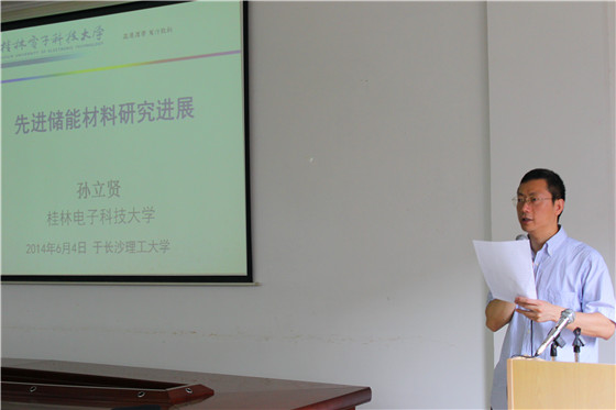 6月2-4日,我国著名的储氢储能和材料物理化学研究专家、云顶国际vip8866“湖湘学者”特聘教授、中科院优秀“百人计划”学者、广西“八桂学者”、桂林电子科技大学材料科学与工程学院院长、博士生导师孙立贤教授来到化学与生物工程学院指导研究和交流讲学。两天来,孙教授与化学学院能源材料与分析监测科研团队的骨干成员进行了广泛的研讨,并就新能源材料和材料监测新技术等领域的研究前沿及发展趋势与各位老师和研究生进行了面对面的交流,提出了新能源材料下一步发展的目标和实施的方向。
