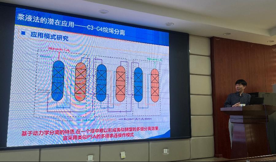 陈光进教授从MOF材料用于气体分离面临的挑战出发,提出了多孔浆液法——吸收吸附耦合分离技术,详细介绍了液膜分离技术的原理、特点、优势以及应用前景,并阐述了液膜分离技术在脱碳、CH4/H2、CH4/N2、C2H6等体系的潜在应用及预期能耗。报告结束后,陈光进教授与师生开展了热烈的讨论,陈教授鞭辟入里地回答了老师们的问题,现场气氛活跃。陈光进教授的学术讲座不仅拓宽了师生们的研究视野,也对云顶国际vip8866化工、化学、材料科学等相关领域的学术研究与发展起了积极的推动作用。