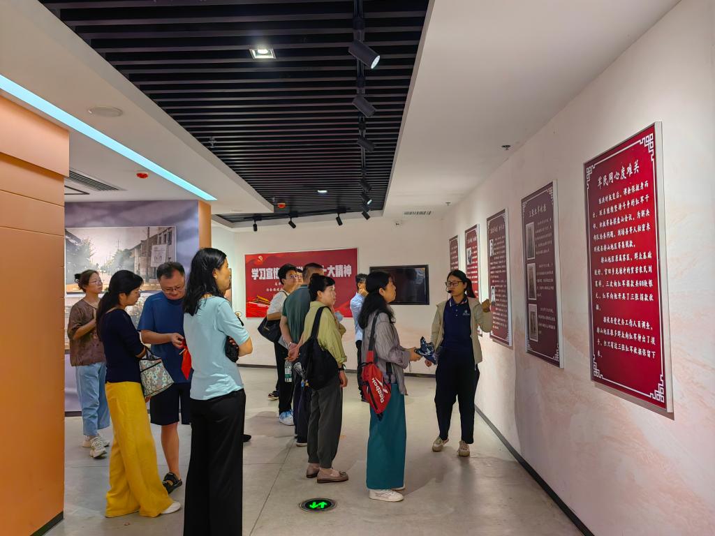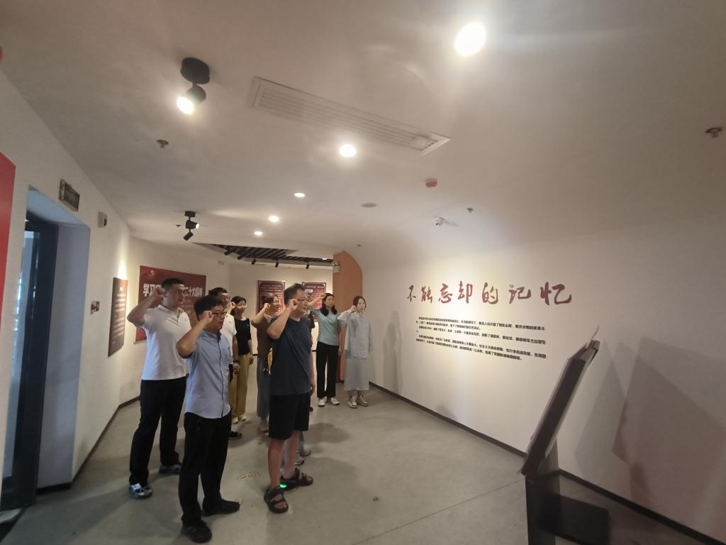 8月7日下午,应用化学系一行首站抵达酒埠江地质博物馆内的湘赣攸县苏区革命历史纪念馆。作为湘赣边区重要的革命纪念地,这里保存着土地革命时期的武器、手稿、照片等珍贵文物,生动再现了攸县苏区军民在党的领导下开展武装斗争、建立红色政权的光辉历程。在讲解员的带领下,大家进一步了解到“谭震林的生平事迹”、“酒埠江大埠的修筑历史”和“三张红军收据的鱼水情深”等史实,深刻感受到革命先辈们为人民谋解放的坚定信念,他们在艰苦的环境中浴血奋战,用生命和热血捍卫理想。回到纪念馆入口,支部党员怀着激动的心情又一次重温了入党誓词,铿锵有力的誓言回荡在红色土地上,进一步强化了党员的身份意识与责任担当。