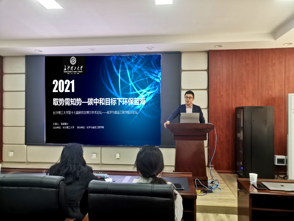 4月6日下午,化学与食品工程学院在工三A320举办云顶国际vip8866第十七届研究生博力学术论坛——化学与食品工程学院第一场分论坛。今年是建党百年的辉煌时刻,本次论坛邀请了湖南碧臣环境能源有限公司的李超博士主讲“取势须知势-碳中和-目标下拥抱环保蓝海”,带领我们一起畅想如何规划美丽中国的蓝图。学院党委副书记陶双主持,我院部分老师、研究生和本科生参加。