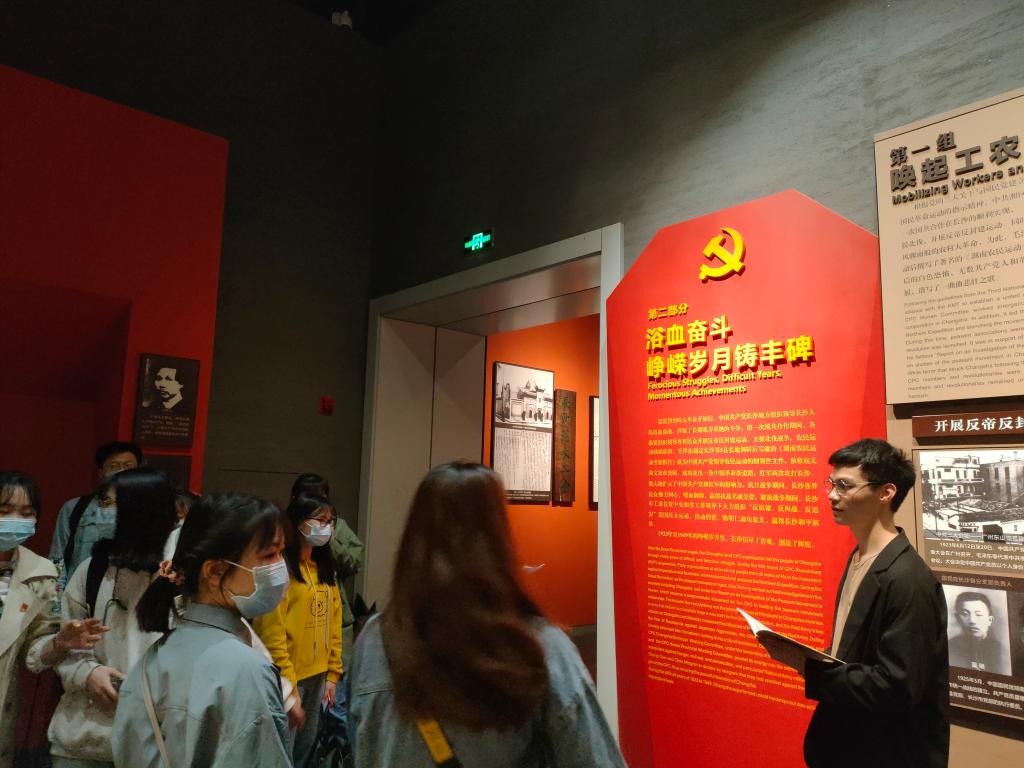 通过前期精心的准备,采取自助讲解、舞台演绎等方式探寻革命文化伟力。党员们化身讲解员,结合党史与自身体会,对中共长沙历史馆“建党先声——苍茫大地主沉浮”、“浴血奋斗——峥嵘岁月铸丰碑”、“接管建政——全面建设开新局”三个党史馆主题,以曾国藩、黄兴、毛泽东为重点,生动描述了湖湘人物的丰功伟业和翔实史实。