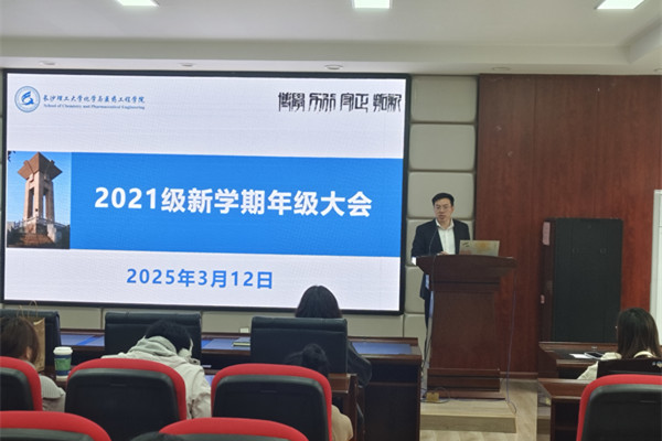 2025年3月12日下午,长沙理工大学化学与医药工程学院2021级本科生年级大会在云塘校区工科三号楼A320报告厅举行,学院党委副书记、2021级辅导员李家春出席会议并讲话,全体2021级全体同学参会。
