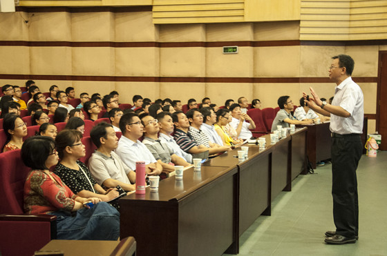 严纯华院士还为化学与生物工程学院的全体师生作了题为“稀土功能纳米材料的合成与性质”的学术报告。严纯华院士在报告中分享了他结合北京大学坚实的配位化学和表面物理化学学术基础,独辟新径,20余年来怎样致力于开展稀土纳米材料合成和性能相关研究工作的宝贵经验。严院士课题组通过独特的化学方法合成了多种功能性稀土纳米发光材料,利用这些稀土纳米材料特有的光学和磁学性质,在信息存储,生物成像等应用领域取得了显著效果。