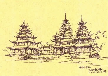 从猛洞河边的芙蓉镇到凤凰古街,从湘西苗寨到芷江万和鼓楼,从洪江古商城到永州龙家大院,从窨子屋到张谷英村油豆腐作坊,从通道芋头侗寨到新田三堂九井二十四巷,从风火墙到古亭构件和砖木窗饰……自上世纪九十年代起,欧阳国辉就一直关注乡村,并用钢笔速写的方式记载着湖南乡村的历史与文化,关注乡村的发展和文化的传承。在他的笔下,作品构图稳重,线条流畅,较好表达了湖南古村古镇的自然与人文特色。