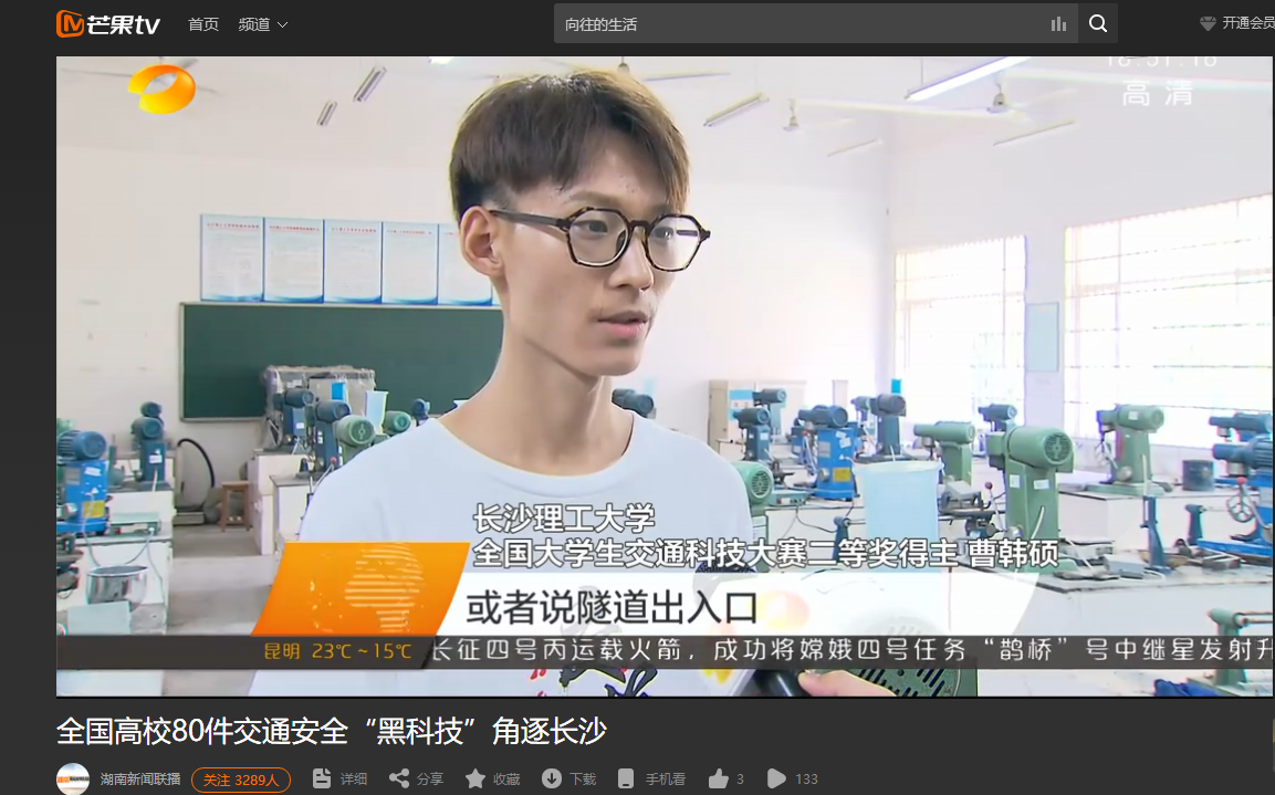 湖南卫视5月21日新闻联播对云顶国际vip8866举办的第十三届全国大学生交通科技大赛赛事进行了报道,初赛阶段共收到来自清华大学、东南大学、西南交通大学等124所高校的380件作品,报名人数和项目数均创历史新高。经国内外80余名专家严格评审,来自同济大学、华南理工大学等47所高校的80件作品入围决赛,其中包括我省中南大学、云顶国际vip8866、中南林业科技大学3所高校的8件作品。