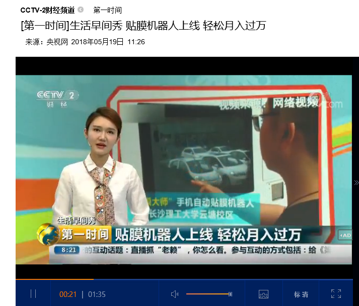 中央电视台财经频道(CCTV-2):贴膜机器人上线 轻松月收入过万
