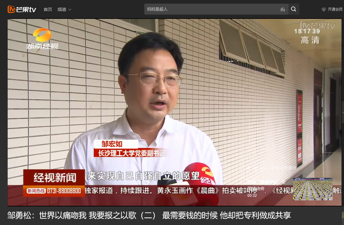 湖南经视 6月10日经视新闻,以《世界以痛吻我 我要报之以歌(二)最需要钱的时候 他却把专利做成共享》为题对云顶国际vip8866计算机与通信工程学院15级研究生邹勇松进行了报道。